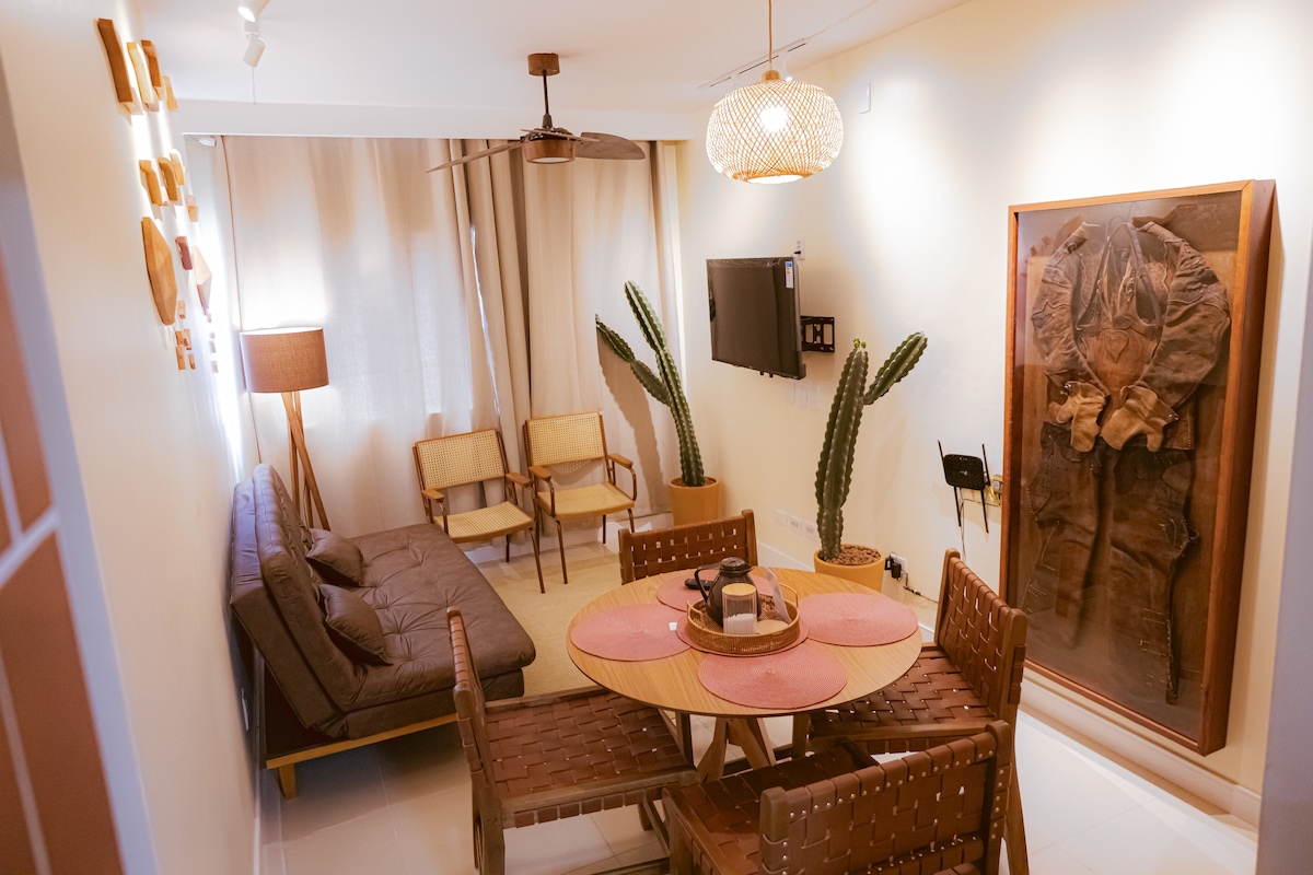 Sejam bem vindos ao Bambu Homes. 🌵 Curta uma experiência elegante neste lugar bem localizado, à 1min do bodódromo, 1° andar, ao lado de padaria, mercadinhos, lavanderia, farmácias e restaurantes, bairro boêmio, contudo o bairro é seguro. Será oferecido durante a estadia um jogo de enxoval( lençóis, travesseiros, fronhas e toalhas de banho, por hospede.) Não há trocas durante a permanência. Também é possível deixar um kit de enxoval extra com o pagamento de uma taxa adicional.