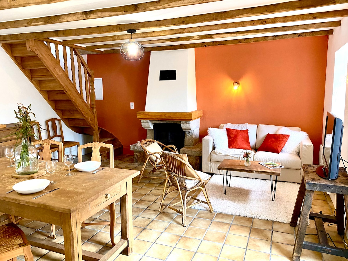 A hidden gem in the heart of rural Brittany located down a country lane. You step into an open plan kitchen/lounge which has a pine table and 4 chairs. In the lounge theres a coffee table, 2 stylish brown leather chesterfield sofas and a wall mounted smart tv with Netflix. In the sun room theres a log burner with 2 single chairs. A downstairs toilet/washing machine are in the utility. Upstairs are 2 large bedrooms which have super king beds, deep mattresses finished off with 9cm feather toppers.