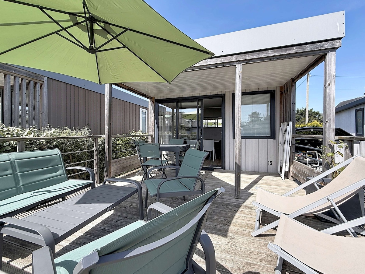 Mobil home 4 people with views of the Bay/Camping 4 * Port-Mer Beach directly access to the beach Pointe de Groin 근처, 해안선을 따라 멋진 하이킹의 시작 침대/침구 유형: 이불과 베개를 마음껏 즐기세요. 도움을 드릴 수 있습니다. 주방 침구 샤워 매트 정원 가구와 선베드 2개, 잔디밭, 개별 숯 바비큐, 소파, 정원 의자가 있는 테라스 가스 플랜차