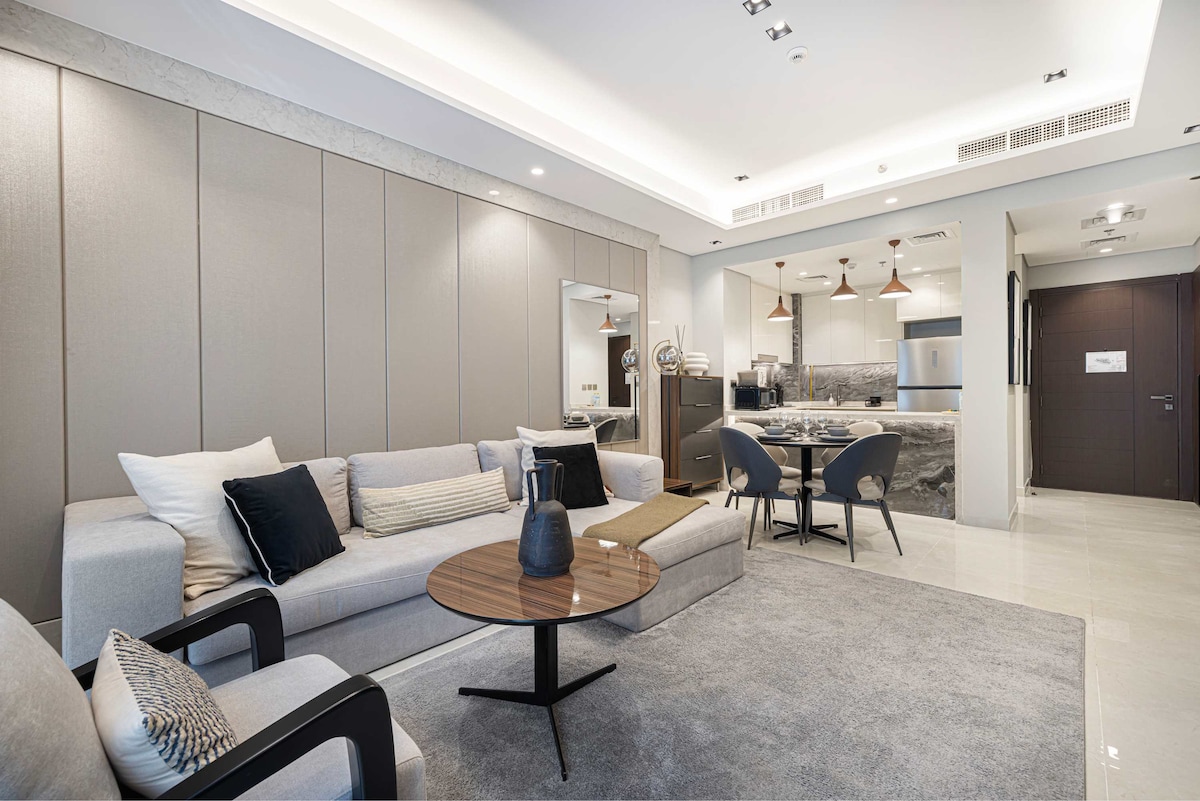 Bright & Stylish 1BR Apartment Near Downtown Dubai 🌟 Welcome to your modern city escape — perfect for up to 2-3 guests! This beautifully designed 1-bedroom apartment offers a private balcony with charming views, contemporary decor, and all the comforts of home. Just minutes from Dubai Mall, Burj Khalifa, and the heart of the city 🏙️, you're right where the action is, while still enjoying a peaceful and relaxing space. You'll enjoy a comfortable bedroom and sofa bed, a fully equipped kitchen, S