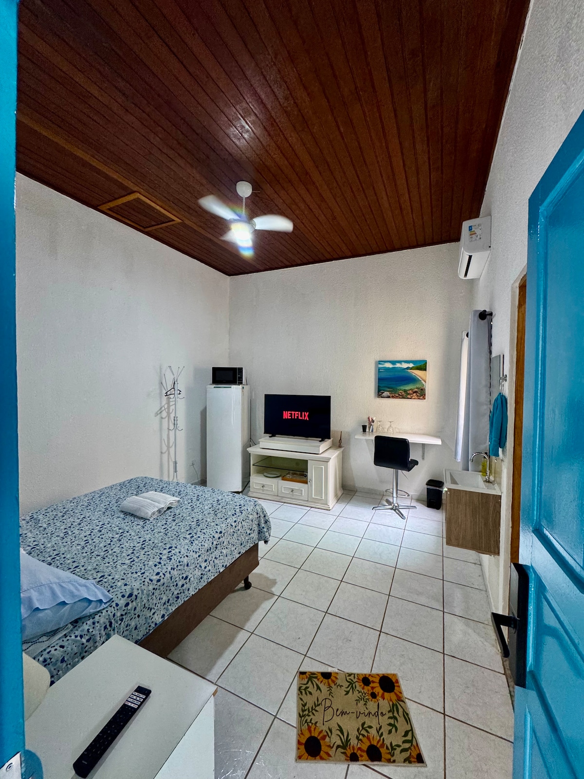 넓고 개인적인 스튜디오 아파트, 커플, 2명 이상, 총 4명에게 이상적, 훌륭한 위치, 슈퍼마켓, 헬스장, 베이커리, 스낵 바, 버스 정류장, 공원, 주요 안항게라 및 반데이란테스 고속도로와 가까움, 준디알 산업 지구와 가까움, 하루 동안의 휴식과 휴식을 위한 조용한 장소.
