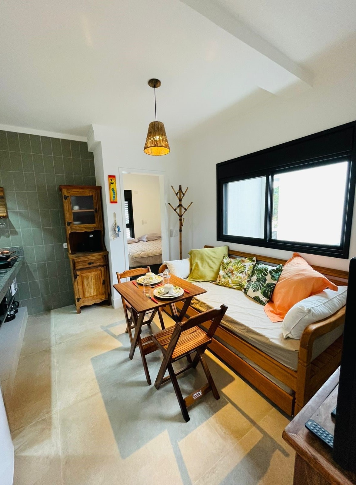The room sleeps up to three people. Located in a strategic point on Juquehy beach on the north coast of São Paulo. The room is fully equipped. Includes bed linen, towels, cups, plates, glasses, air conditioning, microwave and hairdryer. External area with sink and armchairs for rest. Covered parking. Close to supermarket, pharmacy, malls, restaurants, bakeries and gym. There are 950 meters from the beach. Come to enjoa Juquehy.