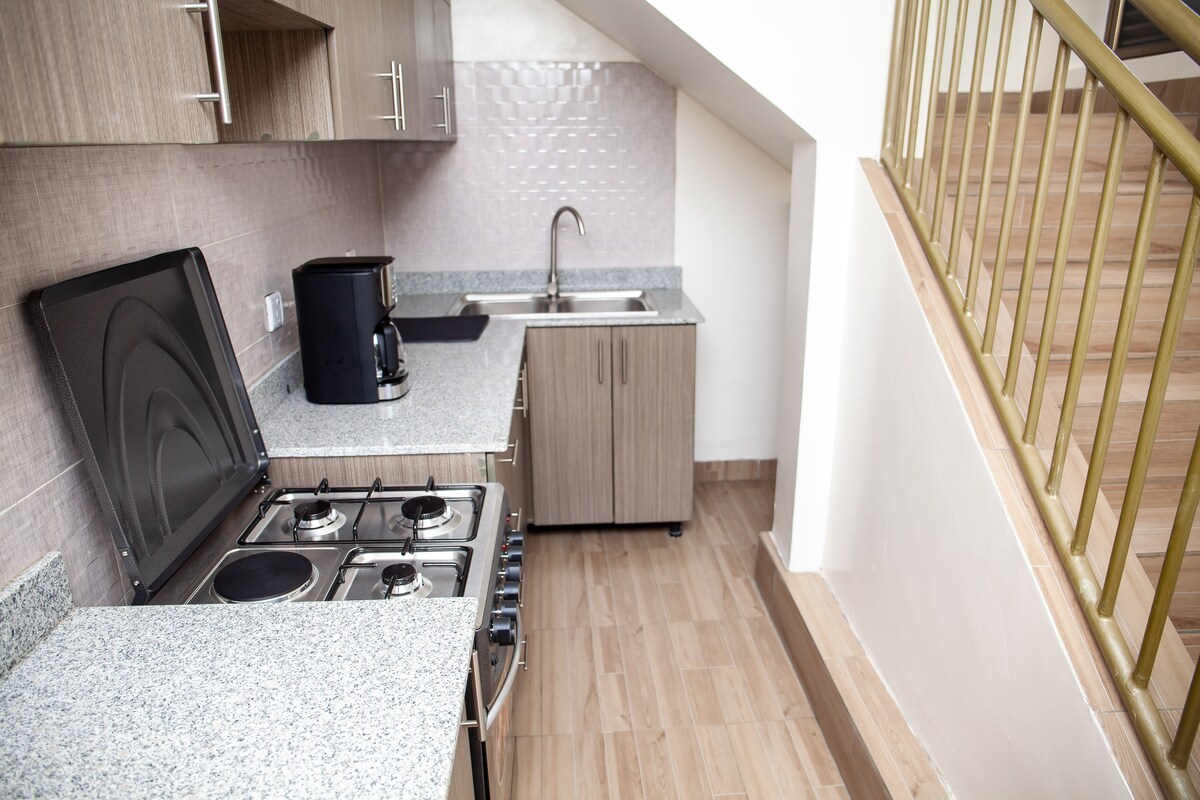 펜트하우스 스튜디오, 자보 스위트에서 럭셔리 체험하기 키갈리의 언덕의 멋진 전망을 감상할 수 있는 전용 야외 욕조가 있는 5층 현대적인 펜트하우스 스튜디오에 머물러보세요. 퀸사이즈 침대, 55인치 TV, 넷플릭스, 초고속 와이파이, 완비된 간이 주방이 있는 세련된 거실 공간을 즐겨보세요. 입주자 전용 수영장과 헬스장에서 휴식을 취하고, 매일 하우스키핑, 연중무휴 보안, 무료 주차 혜택을 누리세요. 비즈니스나 레저에 적합한 키바가바가의 고요한 휴양지는 편안함, 편리함, 프라이버시를 보장합니다.