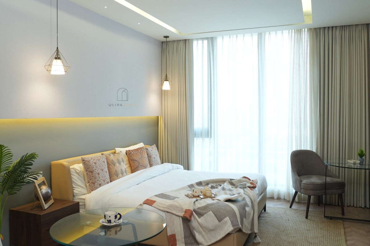 구르가온 중심부의 완벽한 휴양지에 오신 것을 환영합니다! 이 현대적이고 아름답게 디자인된 스튜디오 아파트는 스타일, 편안함, 편리함을 결합하여 단기 숙박과 장기 숙박 모두에 이상적입니다. 스튜디오에는 고속 와이파이, 스마트 TV, 에어컨, 시설이 완비된 간이 주방, 편안한 퀸사이즈 침대 등 모든 현대적인 편의시설이 갖춰져 있습니다. 출장으로 오시든 레저로 오시든, 원활한 숙박에 필요한 모든 것을 찾으실 수 있습니다.