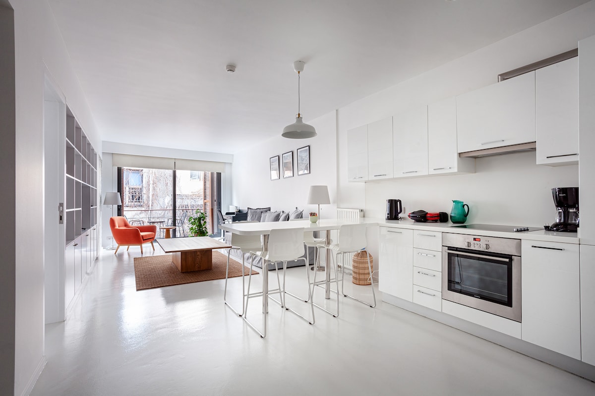 평화롭고 중심부에 위치한 이 숙소에서 심플함과 스타일을 즐겨보세요! 지진에 강한 신축 건물에 자리한 이 숙소는 현대적인 편의시설을 갖추고 있습니다. 빛이 가득한 거실은 세련된 인테리어와 편안한 좌석을 자랑합니다. 시설이 완비된 주방에는 고급 가전제품이 구비되어 있습니다. 침실에는 고급스러운 침구와 다양한 베개가 구비된 아늑한 침대가 있어 편안하게 지낼 수 있습니다.