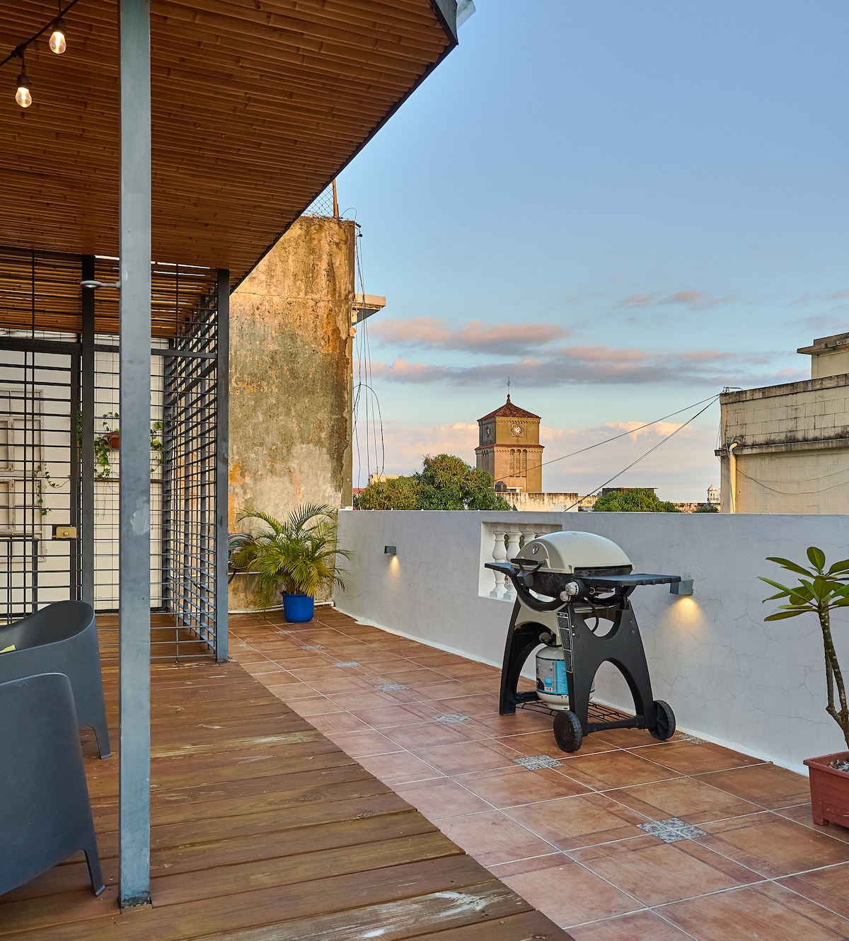 This charming 2 bedroom corner house is located in the walled colonial city of Santo Domingo. It’s only a few steps away from historical attractions, museums, restaurants, coffee shops, bars, souvenir shops, bakeries, supermarket and lovely squares. The beautiful covered terrace, overlooking the rooftops of the old town with living area, hammock and BBQ is perfect for a relaxing afternoon or evening.