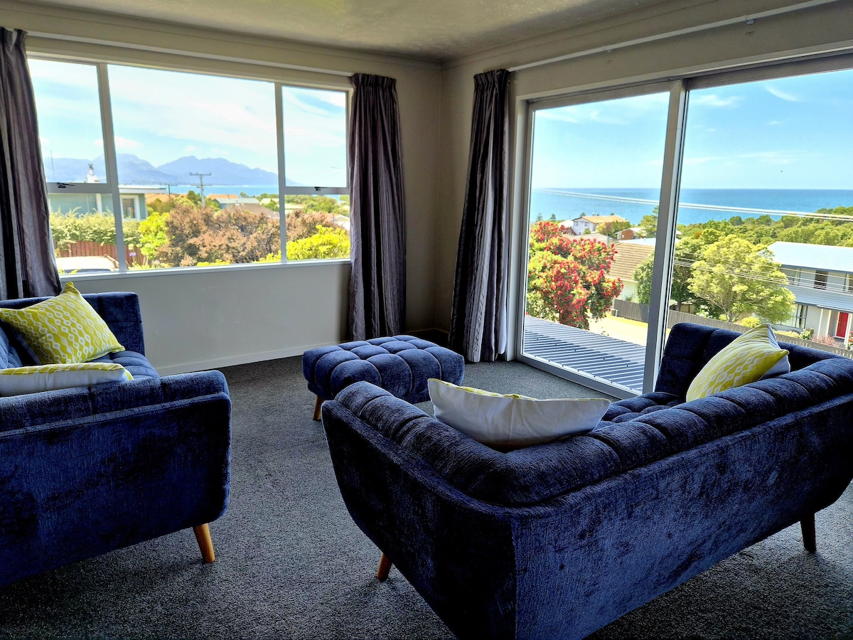 가장자리에 자리한 이 멋진 숙소에서는 바다와 카이코우라의 산맥의 탁 트인 전망을 감상할 수 있습니다. 편안한 스타일과 편안함을 염두에 두고 세심하게 디자인된 숙소로, 들어서는 순간부터 특별함을 느낄 수 있는 곳입니다. 개방형 거실은 햇살 가득한 발코니로 이어져 커피, 와인 등 다양한 음료를 즐기기에 완벽합니다. 여행이나 휴식을 위해 이곳에 오셨다면, 이곳이 바로 당신이 원하는 곳입니다.