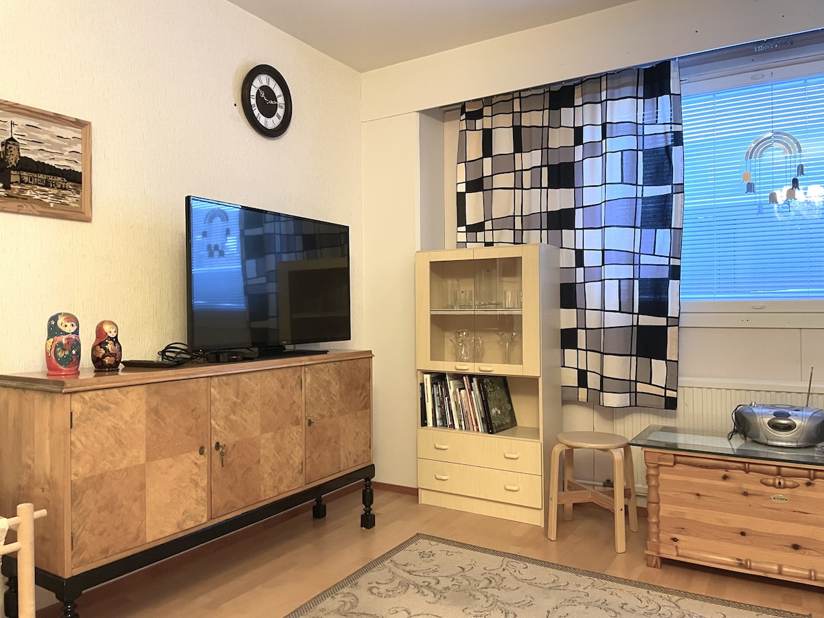조용한 주택가에 위치한 아늑한 2룸 주택입니다. 침실에는 고급스러운 더블 침대가 있습니다. 커다란 소파에서 편안하게 휴식을 취하며 TV를 볼 수 있습니다. 넓은 욕실에는 세탁기가 있습니다. 주방은 잘 갖춰져 있습니다. 향신료와 커피, 차도 사용할 수 있습니다. 이 아파트에는 장기 임대에 필요한 모든 것이 있습니다. 출장객에게 적합합니다. 사우나 후 시원하게 쉴 수 있는 테라스가 있는 안전한 뒷마당. 폴뤼바라의 야외 활동 공간이 근처에 있습니다. 차량은 난방 기둥이 있는 곳에 주차하세요.