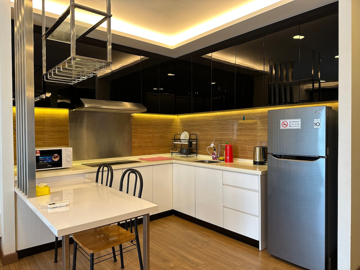 StarSuiteAC – 구름 위로 솟은 듯한 고급스러운 숙박! 고층에 위치한 고급스럽게 설계된 듀플렉스로, 숨막히는 쿠알라룸푸르 스카이라인의 구름 카펫 전망을 자랑합니다. 은하처럼 보이는 별이 빛나는 천장 아래에서 휴식을 취하며 최고의 스테이케이션을 경험하세요! 방음 노래방, 당구장, 에어하키 코트, 서라운드 사운드 시스템을 갖춘 홈시네마에서 영화를 감상해보세요. 시설: 주방, 냉장고, 전자레인지, 밥솥, 에어프라이어, 정수기, 세탁기(건조기 포함), 마사지 의자 등