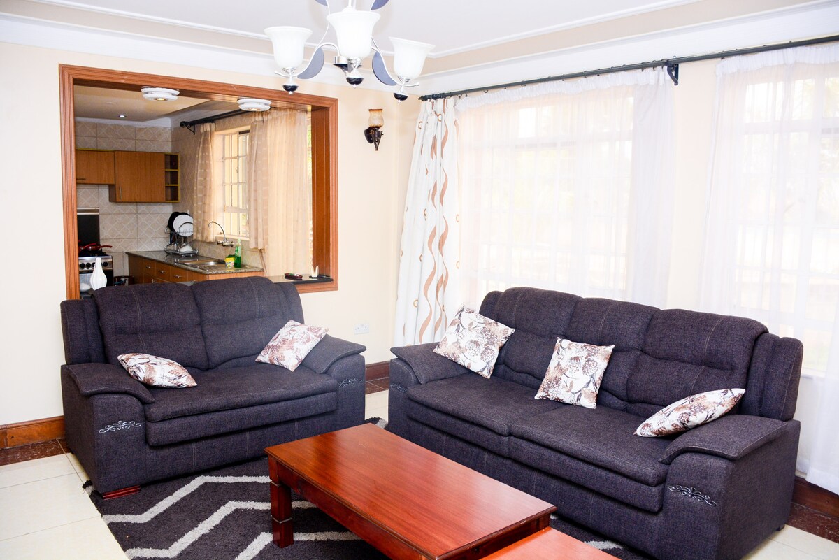 24시간 보안 시설을 갖춘 고요하고 안전한 외부인 출입 제한 커뮤니티의 엠바카시 지역에 위치한 침실 3개짜리 아파트입니다. 주차장이 제공됩니다. 깨끗한 흰색 침구가 있는 퀸사이즈 침대가 있는 침실 3개가 있습니다. 온수 샤워 부스가 있는 욕실 2개. 모든 기구가 구비된 주방, 빌트인 밥솥, 냉장고, 전자레인지. 50인치 TV와 안정적인 와이파이가 제공됩니다. 조모 케냐타 국제공항에서 차로 15분 거리에 있으며 쇼핑 센터가 도보 거리에 있습니다.