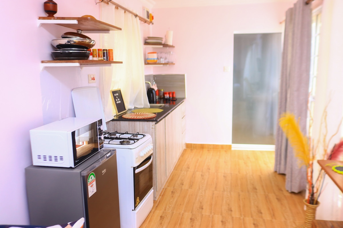 하디의 아늑한 전원주택은 감미로운 정원과 길이 있는 토착 숲이 있는 안전한 2.5에이커 규모의 부지에 자리잡고 있습니다. 기린 센터, 슈렐드릭의 코끼리 보호구역, 나이로비 국립공원 입구 등 쇼핑 시설과 관광 시설까지 몇 분 거리에 있습니다. 윌슨 공항으로 이동하여 국내선 및 지역 항공편을 이용하세요. 저희는 게스트가 저희와 함께 작은 천국을 즐기는 것을 좋아하는 작은 가족입니다. 스타터 티, 커피, 우유, 설탕, 루 롤, 비누를 제공합니다.