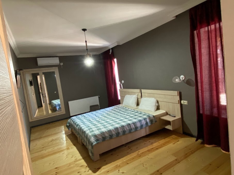 You can book our place which has 2 rooms, a double bed and separate bathroom. We offer you breakfast , Georgian wine and dinner which you can taste on a big terrace, in a garden or in a cellar that was built in the 18th century. For each room of night price is $45.