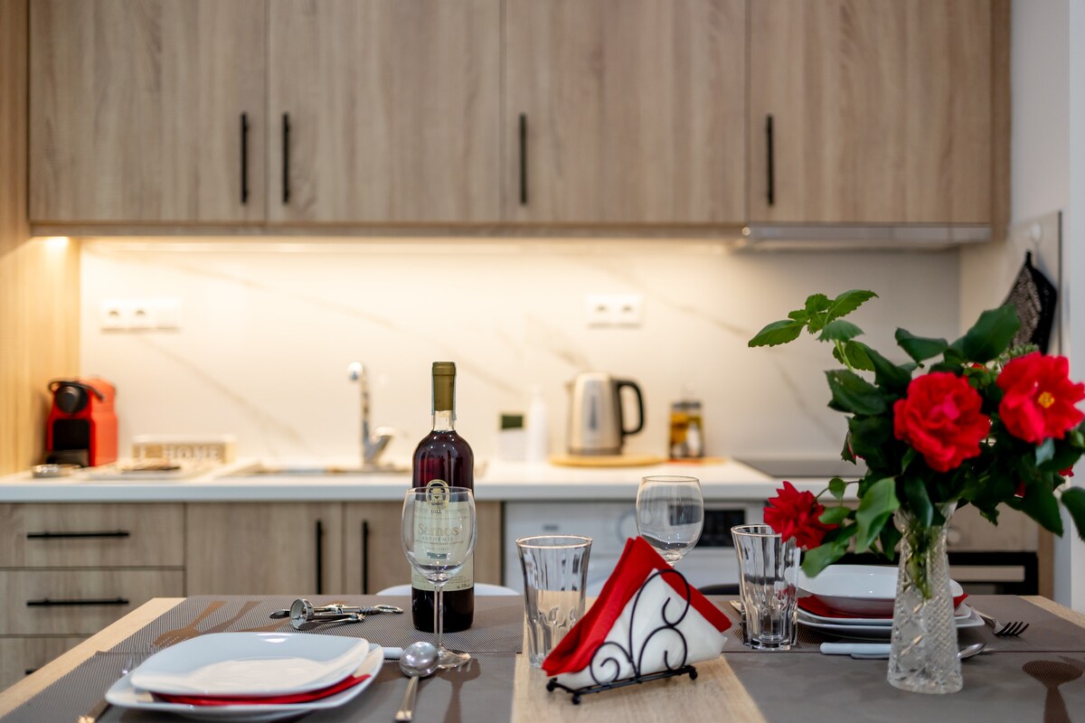 새로 지어진 아파트(2023년 지어짐, 에너지 등급 A++)에서 즐거운 시간을 보내세요. 레일웨이 공원과 도시의 마리나 옆에 있는 고급스럽고 편안한 원룸입니다. 한적한 동네 분위기와 현대적인 건축물의 안전한 환경을 즐기며 아름다운 추억을 만들어보세요. 커플, 솔로 여행자, 디지털 노마드에게 적합합니다. 카페, 베이커리, 미니 마켓, 슈퍼마켓, 약국이 가까이에 있습니다. 칼라마타 공항에서 7킬로미터 거리에 있습니다.