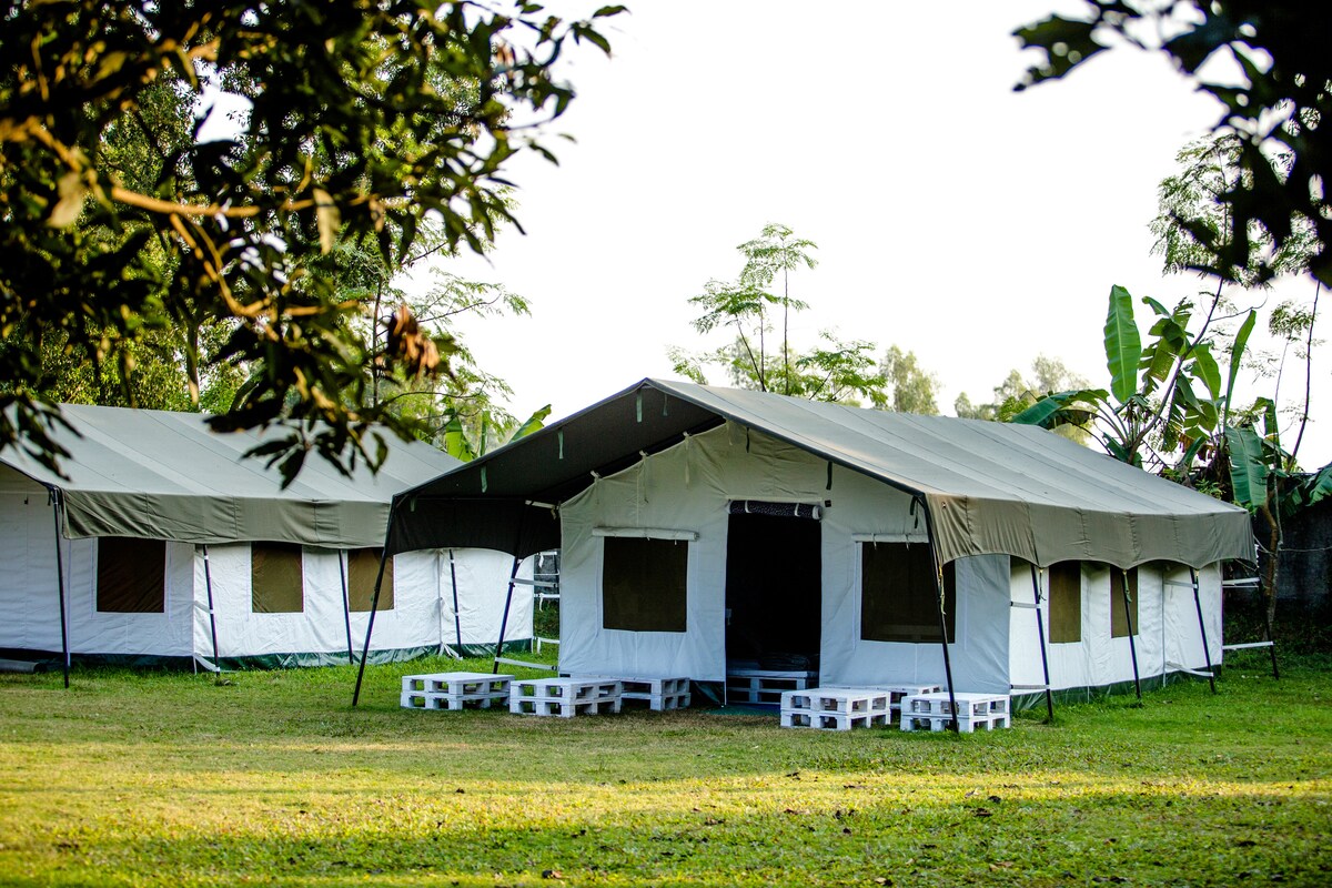 Reconnect with nature at this unforgettable MARS Village Camp (MVC), a camping site located just 90 minutes drive from Dhaka. This tranquil oasis offers a peaceful ambience surrounded by lush greenery. MVC features 4 tents with beds, table and cupboard. Activists like badminton, dart, carrom, fishing are available. Facilities also include BBQ, both indoor & outdoor dining. MVC is a secured compound with 5 parking space. Experience the joy of camping where nature and comfort come together.
