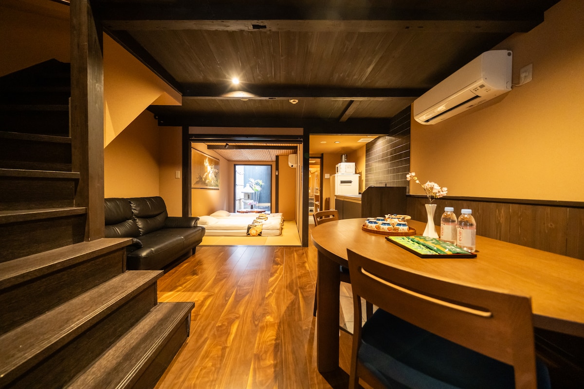 1.This is a renovated traditional Kyoto machiya over 140 years old, located in the city center near the Kamo River, major sightseeing spots, and shops. 2.Please note that, due to its original design, the entrance height is approximately 170 cm and the stairs to the second floor are steep. Handrails are provided; however, the property may not be suitable for small children, elderly guests, or guests with mobility difficulties. Please contact us before booking if you have any questions.