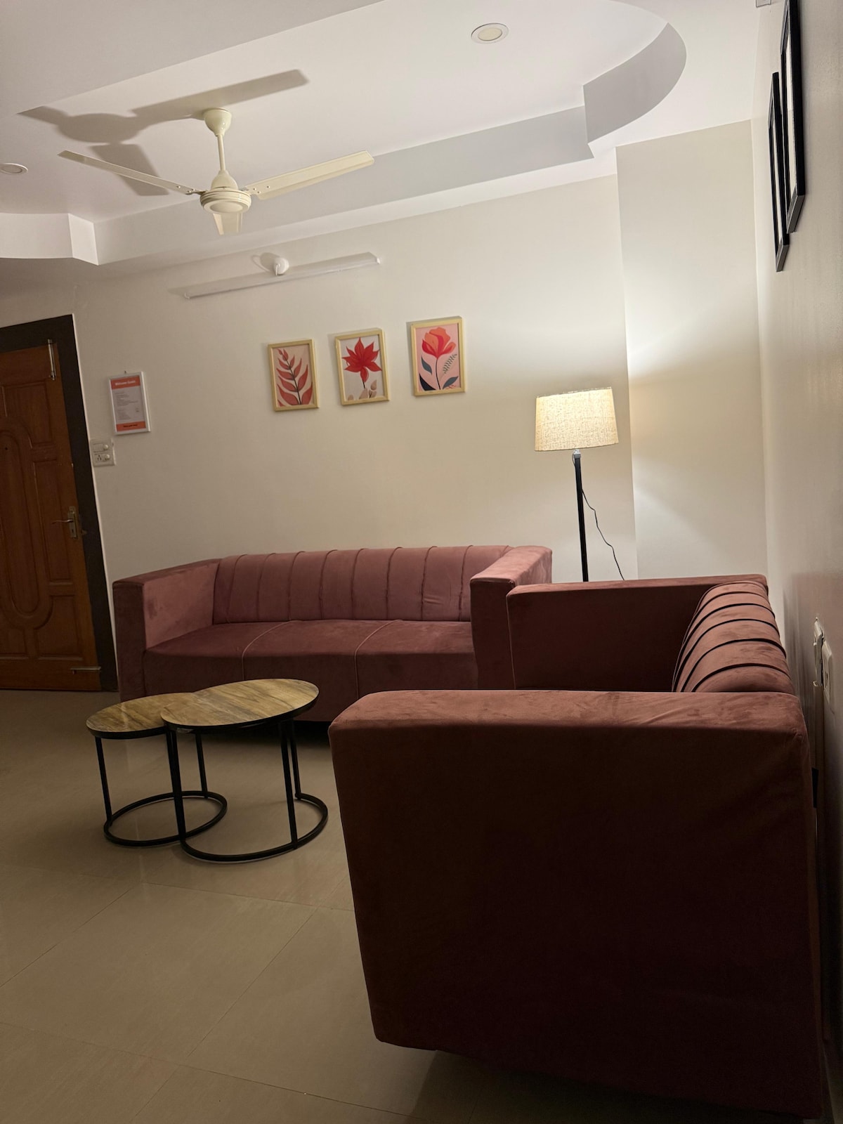 주방이 딸린 1BHK와 4명을 수용할 수 있는 소파 겸용 침대가 있는 거실 공간입니다. 발전기가 아닌 인버터가 있습니다. 에어컨은 인버터에서 작동하지 않습니다. 예약하실 때 참고하시기 바랍니다. 커플을 위한 프라이버시를 원하신다면, 저희는 커플 친화적이고 가족 친화적이기 때문에 더 이상 찾지 마세요.