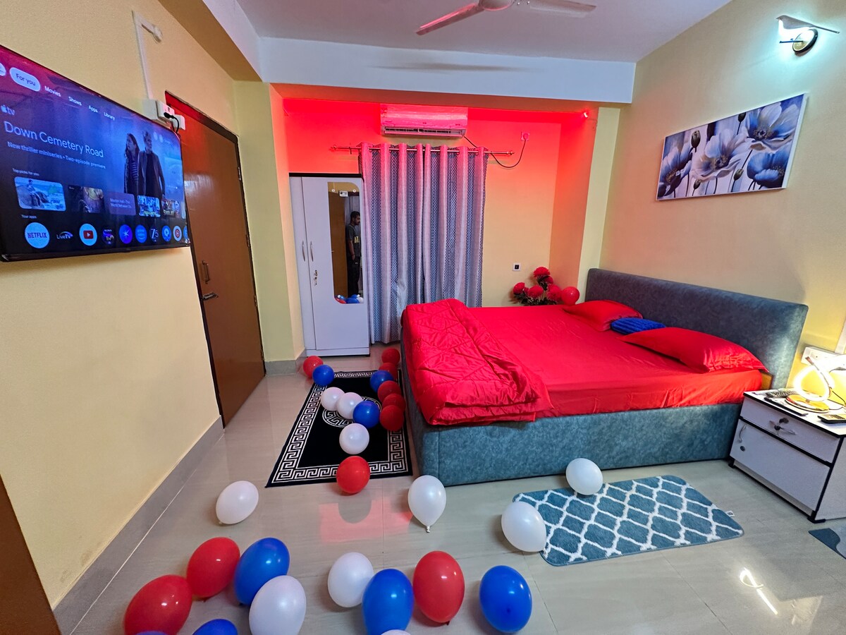 이 평화로운 숙소에서 온 가족과 함께 휴식을 취하고, 가족 파티와 이벤트를 개최하세요. 숙소는 TV와 킹사이즈 침대가 있는 침실 1개, 침대 1개, 주방 1개, 욕실 1개가 있는 1bhk 아파트입니다. 요리 및 숙박에 편의시설이 모두 있습니다.