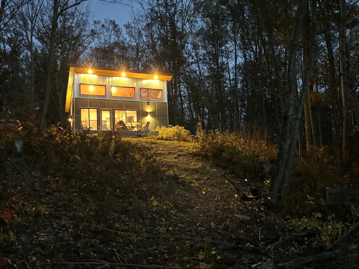 즐거운 가을! 코스모의 크로싱 - 숲속에 자리한 이 아름다운 작은 헛간에서 오프그리드 작은 집의 평화를 경험해보세요. 소규모 가족, 낭만적인 휴양지, 예술가 휴양지로 완벽한 가을 휴양지. 선착장을 건너 나만의 은신처로 향하는 여행을 시작하고 주변의 많은 주립 공원에서 모험을 계획하거나, 도로에서 불과 1마일 거리에 있는 나이프 레이크에서 장난감과 낚시 장비를 챙겨 놀아보세요. 그리고 고택에 있는 많은 동물들을 방문하는 것도 잊지 마세요.