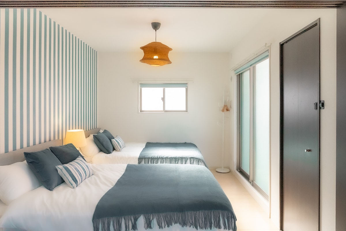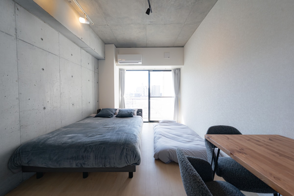 가족이 함께 즐기는 비일상적인 패밀리 스테이. 2019년 준공된 건물의 최상층 10층에 위치한 객실로, 넓고 편안한 공간과 세련된 인테리어가 여행지의 거실 같은 분위기를 제공합니다. 드럼식 세탁건조기가 설치되어 있어 세탁부터 건조까지 한 대로 모두 가능합니다, 가족 및 연박에 적합합니다. 어린이를 위한 장난감이 준비되어 있으며, 도보 1분 거리의 마쓰바라 공원에서 축구공으로 야외 놀이도 가능합니다. 2~6세용 어린이 좌석 자전거 2대 이용 가능. 바로 옆에 인기 음식점이 있으며, 오전 8시부터 운영하는 카페 유니콘의 모닝 샌드위치가 유명합니다. 오스칸논 역 도보 10분, 오스 상점가 도보 11분. 더블 침대 2개를 나란히 배치해 아이도 안전합니다.