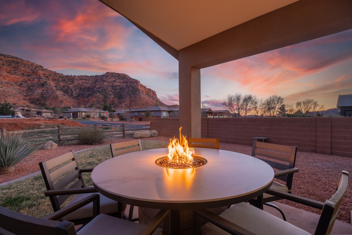 Private view of spectacular red rock cliffs behind the house. Beautiful hikes out the front door. Whether you like hiking, biking, star-gazing, bird-watching, or simply relaxing, this is the perfect base camp. Within easy reach of Zion, Bryce, Grand Canyon, and so much more. Amazing custom home: 3 bed, 3 bath, 2 king beds, dedicated office space, window seats, and stunning views from every room. Outside, enjoy the BBQ, rock art area, and fire pit. Includes access to pool, hot tub & pickleball.