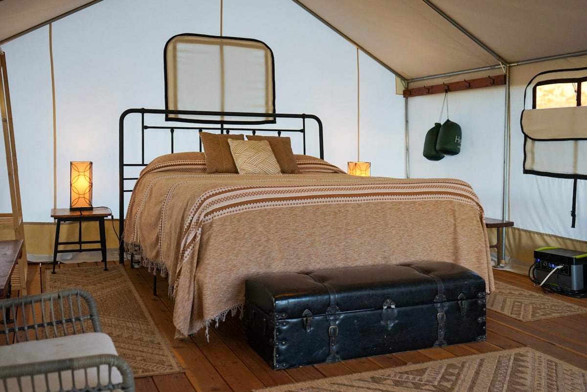 네, 에어컨이 있는 글램핑 텐트입니다! 이스트 자이언 리조트의 글램핑 텐트 3에 오신 것을 환영합니다! 에어컨, 난방, 간이 주방, 욕조 및 샤워기가 있는 전용 욕실을 갖춘 고급스러운 글램핑 텐트로 상상력을 발휘할 필요가 없습니다. 리조트 수영장, 온수 욕조, 피클볼 코트를 이용해 글램핑 경험을 한층 더 즐겁게 만들어보세요. 전용 벽난로 주변에 앉아 텐트에서 바로 별을 관찰할 수 있어 게스트가 선호하는 숙소입니다. 자이언과 브라이스 사이의 완벽한 베이스 캠프입니다!