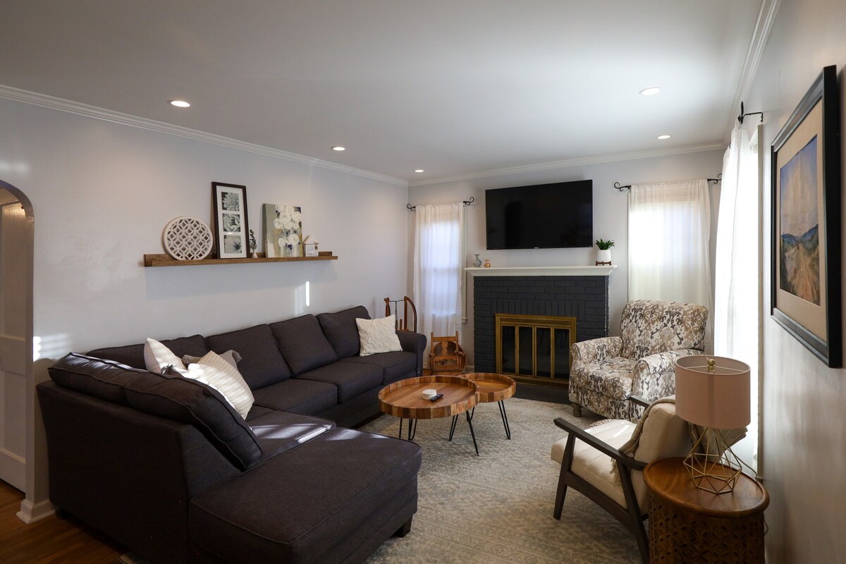 ⭐ Fully renovated 3BR home in Fairway, KS — minutes from KC attractions ⭐ Main-level primary suite with spa-style en-suite bath + clawfoot tub ⭐ Open-concept kitchen with quartz counters + full coffee bar ⭐ Cozy living room with gas fireplace + Smart TV ⭐ Upstairs game room with Xbox + lounge space ⭐ Private office, exercise area, and landscaped backyard ⭐Conveniently located less than 5 minutes from The Shops of Prairie Village and roughly 10 minutes from the Country Club Plaza!