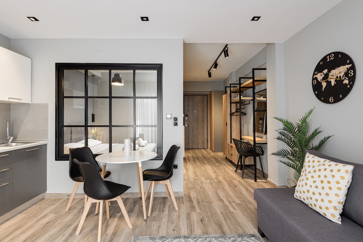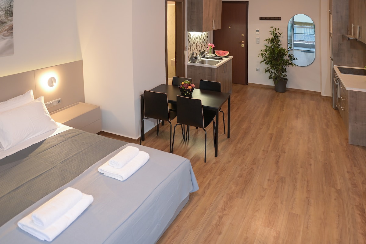-테살로니키 중심가인 미트로폴레오스 거리에 위치하고 있으며, 필요한 모든 것이 도보로 2분 거리에 있습니다. - 모든 주요 교통수단(택시, 버스)을 쉽게 이용할 수 있습니다. - 난방/냉방을 위한 인버터 에어컨 유닛 -호텔 스타일의 욕실 -고급 매트리스, 베개, 시트 -다리미/다리미판 - 암막 커튼 및 블라인드 - 도심 한가운데에 위치해 있지만 외부 소음으로부터 충분히 방음되어 있습니다. -커플, 혼자 여행하는 사람, 친구, 가족에게 적합합니다.