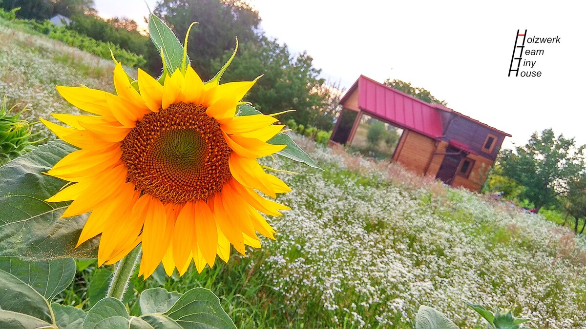 게스트에게 열쇠 없이 출입할 수 있는 진짜 초소형 주택을 제공합니다. 에어컨이 설치된 거실의 홈오피스에도 적합합니다. 책상에 앉아 커다란 반사유리를 통해 자연을 볼 수 있습니다. 이 숙소는 자가 설계 및 제작되었습니다. 자전거는 3대이며, 별도의 요금으로 사용하실 수 있습니다. 모두 최상의 상태이며 휴대전화 홀더, 펑크 수리, 조명 및 펌프가 포함되어 있습니다.
