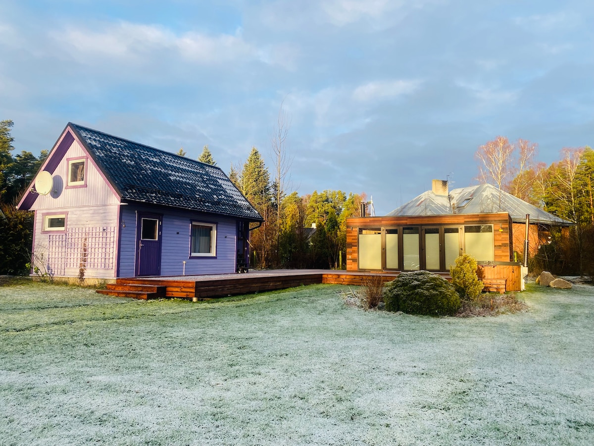 차분하면서도 스타일이 살아 있는 숙소에서 편안한 휴식을 즐기세요. 자연 속에서 조용한 휴가를 보내기에 완벽한 장소입니다. 40평방미터의 작은 2층 주택과 단기 또는 장기 휴가에 필요한 모든 것을 갖춘 별도의 사우나 숙소입니다. 시설이 완비된 주방, 와이파이, TV, 작은 작업 공간, 편안한 사우나, 아늑한 휴식 공간을 갖추고 있습니다.