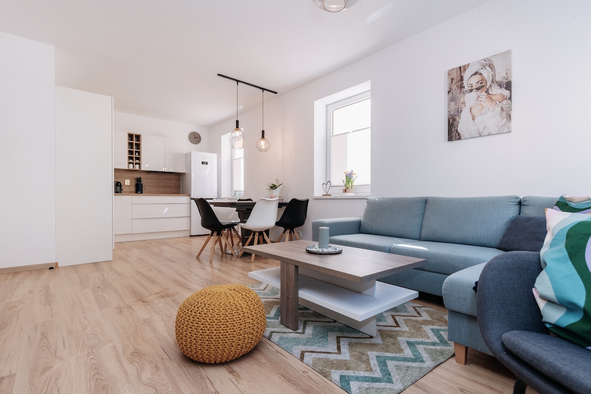 새롭고 접근성이 좋은 2개의 방이 있는 아파트는 플레시베츠키 슬로프/어린이 스키파크, 봅슬레이 트랙, 트레일파크까지 도보로 이동할 수 있는 거리에 있습니다. 조깅 트랙은 숙소 바로 옆에서 시작됩니다. 아파트에는 산 전망과 야외 좌석이 있는 아름다운 테라스가 있습니다. 이 아파트에는 최대 4대의 자전거를 수용할 수 있는 표준 이상의 대형 잠금식 스키/자전거 보관실이 있으며 스키 건조기도 갖추고 있습니다.