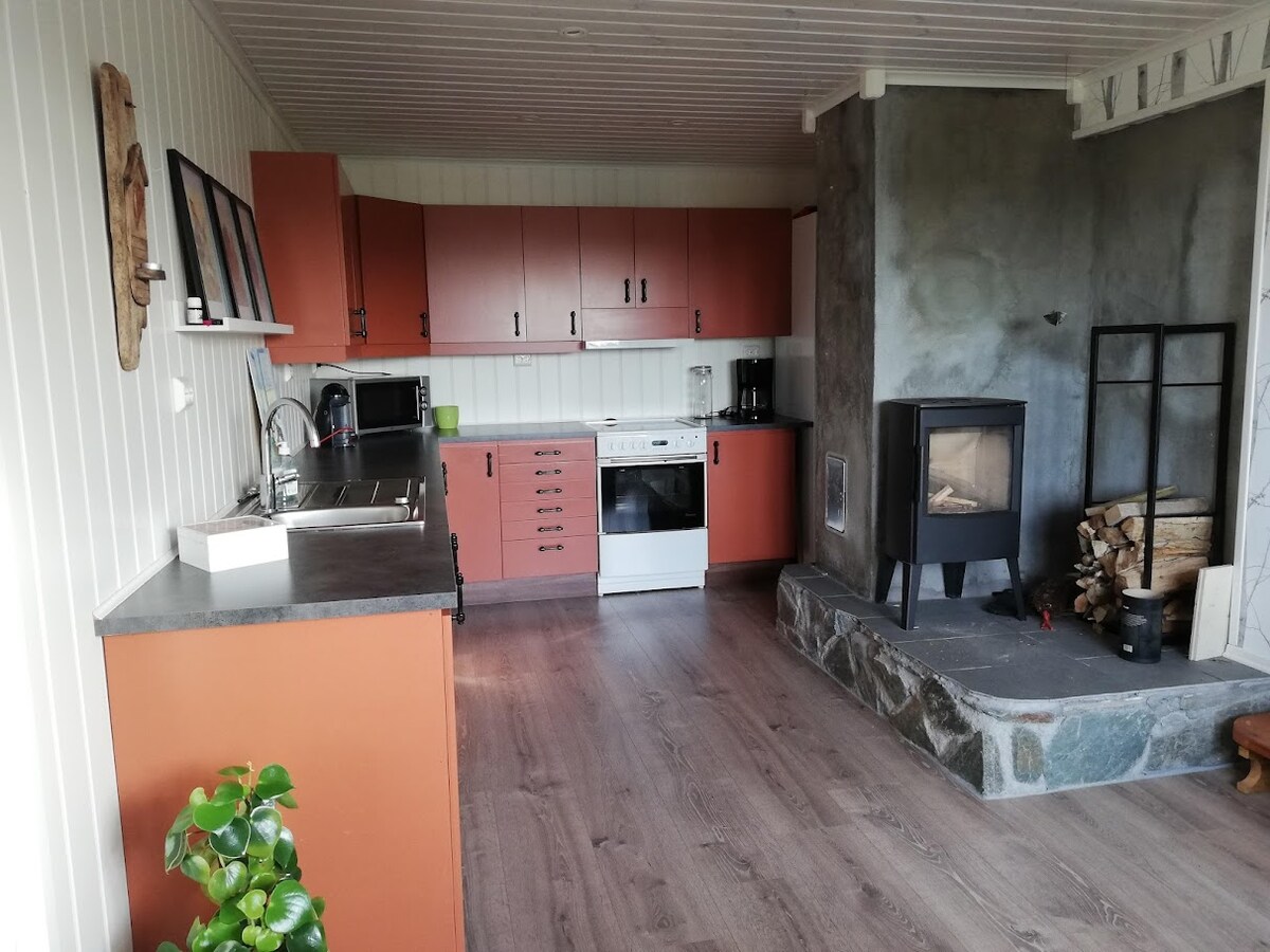 평화로운 숙소에서 온 가족과 함께 휴식을 취해보세요. 바다 옆에 위치한 아늑한 작은 집. 해안과 보트에서 모두 가까운 곳에서 낚시할 수 있습니다. 낚시나 여가를 즐길 수 있는 보트, 카약, SUP 보드를 대여할 수 있습니다. 노르웨이 최고의 모래 해변으로 선정된 오크라산덴까지 차로 10분. 바이킹가르덴과 아발즈네스에 있는 노르웨이에서 가장 오래된 왕좌까지 20분.
