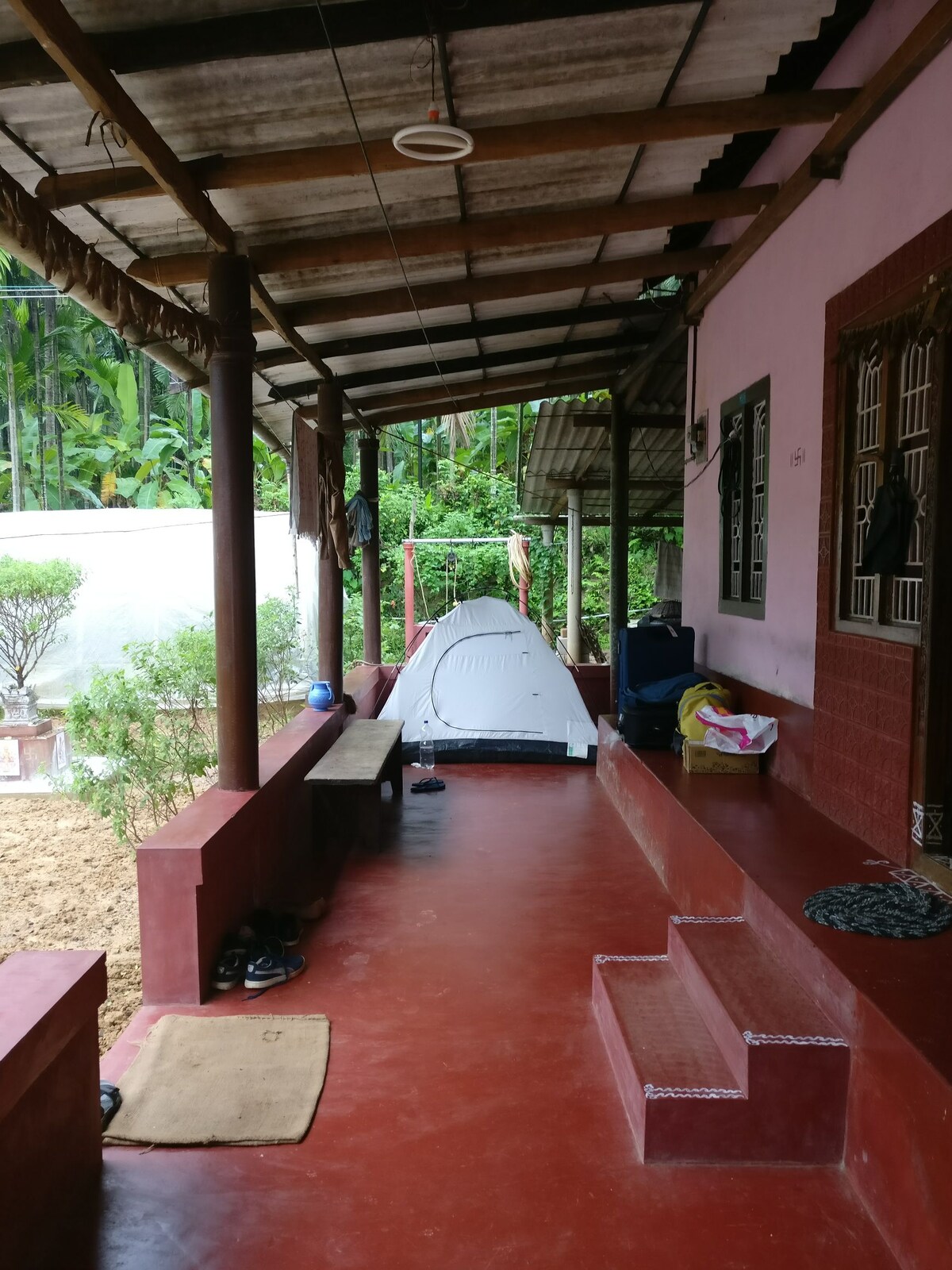 저희는 쿠드레무크 산맥으로 둘러싸인 디두페 계곡에 있습니다. 여러 폭포와 트레킹 코스가 있는 곳입니다. 전용 농장에서 캠핑을 즐기시기 바랍니다. 추가 비용과 욕실/화장실과 같은 기본 인프라를 위해 위생적인 정통 말레나두 음식 (다른 남부 인도 음식 스타일과 매우 비슷) 을 준비하며, 객실 변경은 현장에서 이용할 수 있습니다. 텐트와 심플하고 깨끗한 베개/시트를 제공할 수 있습니다. 텐트와 액세서리를 가져오실 수도 있습니다. 자연 애호가/캠핑카/트레커만 호스팅합니다.