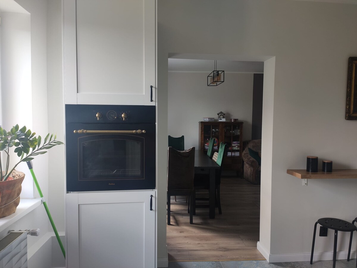별도의 출입구가 있는 집 1층에 위치한 별도의 아파트입니다. 완비된 욕실과 주방: 세탁기, 식기세척기, 전자레인지, 오븐, 가스 호브, 라디오, TV, 접시와 냄비와 프라이팬, 게스트를 위한 수건. 더블 침대가 있는 대형 객실 2개 + 1인용 소파. 유아용 침대를 추가할 수 있습니다. 뒷마당에는 그네, 일광욕 의자, 바베큐. 1박당 1인당 25zł에 카슈비아식 아침 식사를 제공합니다. 반려동물은 연락 후 입실 가능하며 1박당 15zł의 수수료가 부과됩니다.
