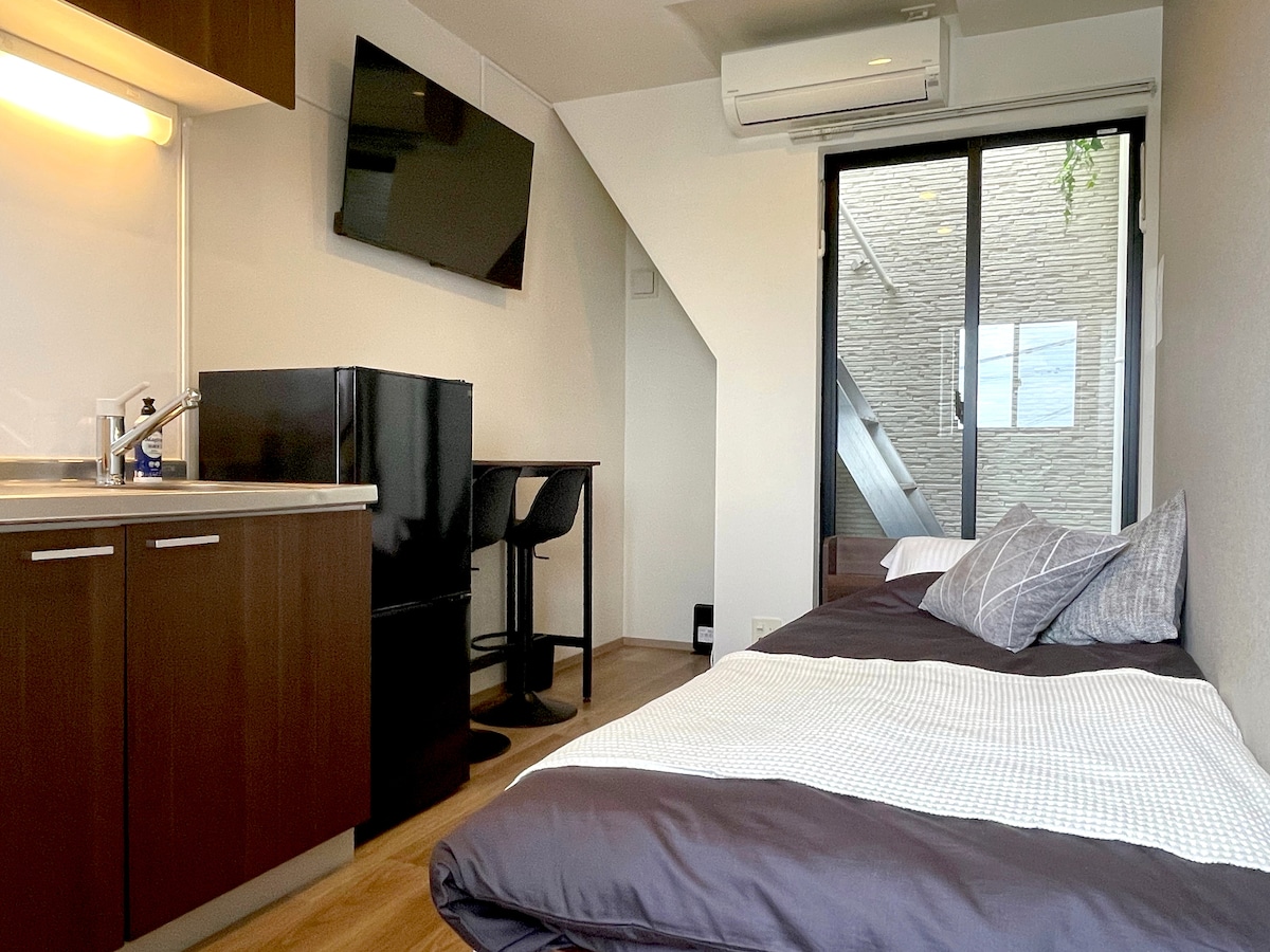 버스 정류장 1분 텐진 하카타 직결! 근처에 식당이 많고 약 30㎡ 규모의 신축 아파트. 욕실 건조기 최대 4명 [GTPD]