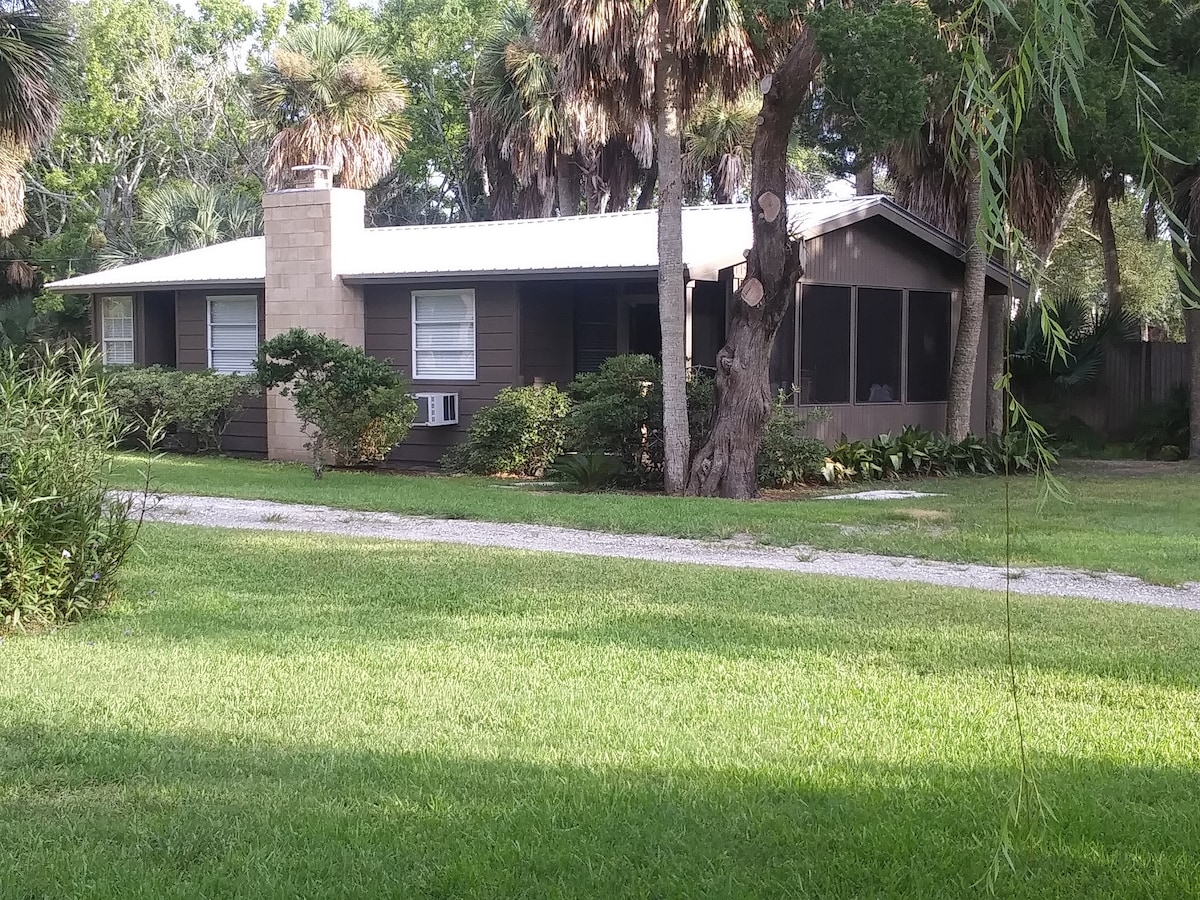 Little Pink Cottage welcomes you to Fanning Island overlooking the St Johns River from your private deck~Cozy studio, brand new, comfy Queen bed, table for 2 or enjoy morning coffee or evening drink on the deck and enjoy the amazing, ever changing views of our wonderful river. Dolphins, pelicans, egrets can often be found playing, frolicking and fishing around the dock. Fishing poles are available for you & bait shops are near by. Come rest, relax & rejuvenate in our little paradise by the sea.