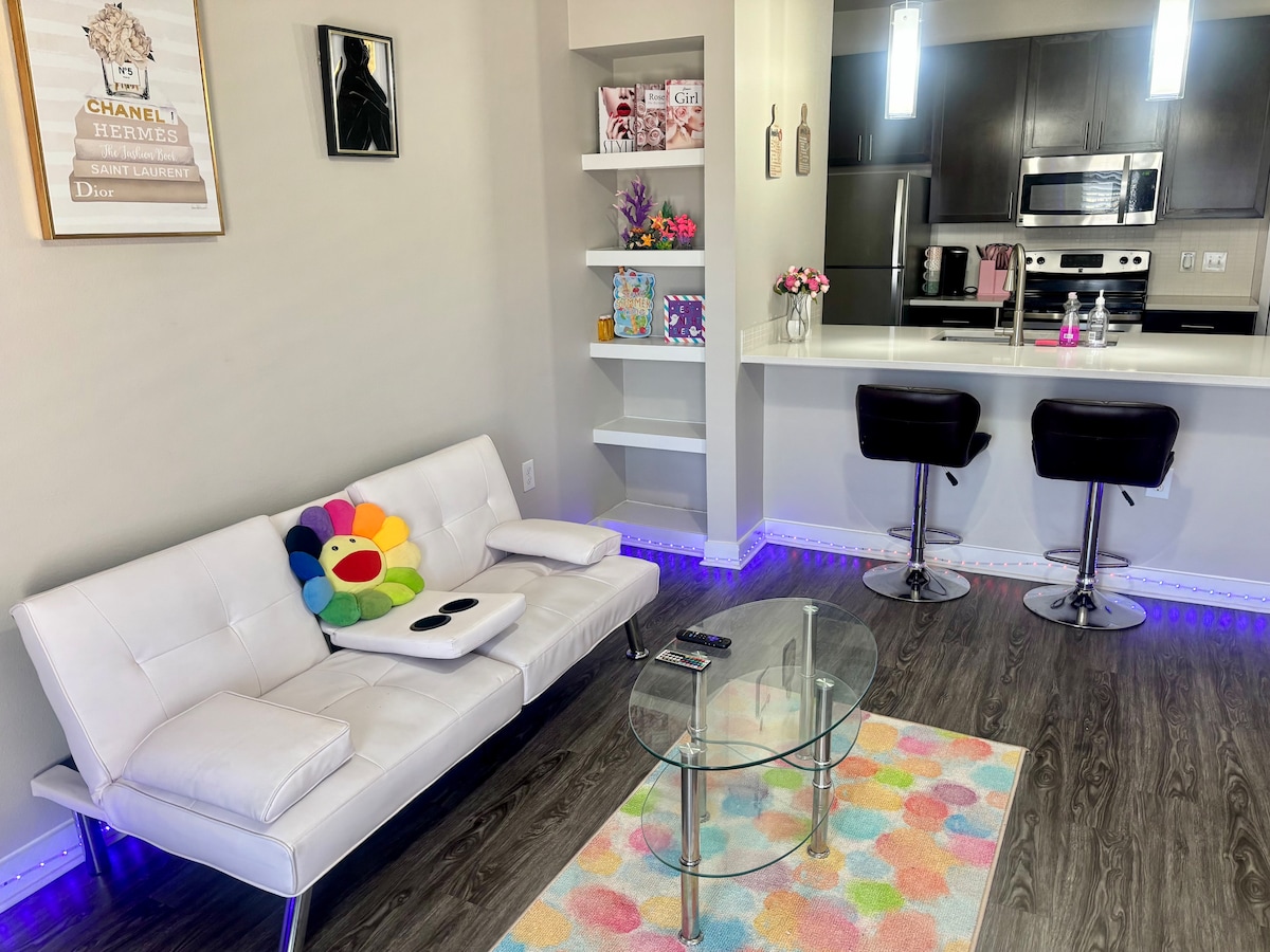 Let this delightful pink escape be the backdrop for your next getaway . Whether you’re on a romantic vacation, a fun girls trip, or just in need of some solo self-care, this one bedroom fully equipped with essential needs girly haven is sure to sprinkle a little magic into your life! 💖🌈