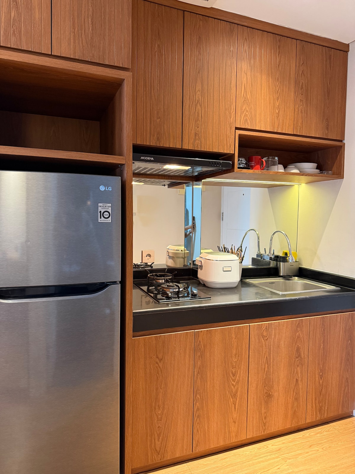 A spacious, cozy 1-bedroom apartment with a living room and balcony at Citralake Suites, West Jakarta's ideal lakeside getaway. Conveniently located just minutes from the Airport, PIK, Puri Indah and Sunset Avenue, it’s easy to explore the city. Step outside and you’re just a 1-min walk from Ciffest, a lively dining area with plenty of food options, supermarkets and ATMs. Our 1 BR unit provides a luxurious and comfortable space for up to 3 guests, with a kitchenette, Free Wi-Fi, and Netflix.