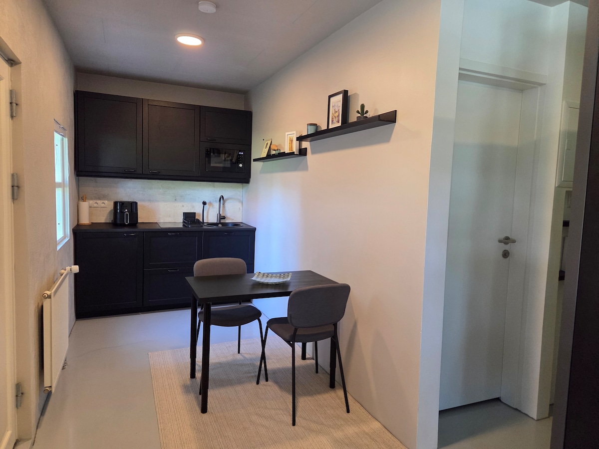 가족 친화적인 동네에 위치한 2인용 전용 출입구가 있는 새롭게 리모델링한 훌륭한 스튜디오 아파트입니다. 35평방미터에 퀸사이즈 침대(160x200cm), 새 주방, 새 욕실이 있습니다. 시내 중심가(차로 15분)로 빠르게 이동할 수 있으며, 주요 도로와 조용한 동네에 쉽게 접근할 수 있습니다. 멀지 않은 곳에 슈퍼마켓이 있고 오두막 욕조와 사우나가 있는 현지 수영장이 있습니다. 버스 정류장은 단 1분 거리에 있습니다. 호수, 강, 탁 트인 공간이 있는 훌륭한 자연 산책로와 가깝습니다.