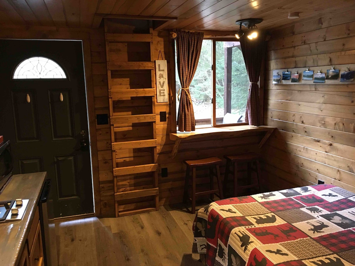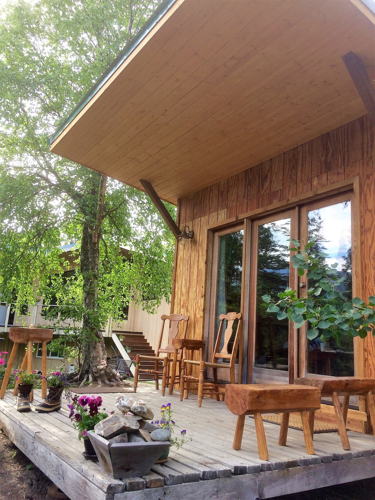 이 전용 캐빈에서는 경이로운 전망을 감상할 수 있습니다! 작은 데크와 커다란 창문이 전망을 안으로 들여옵니다! 알래스카의 매력이 가장 잘 드러납니다! 매우 깨끗하고 편안합니다! 많은 게스트가 휴가 중 가장 마음에 들었던 곳이라고 말합니다! 주방 및 욕실, 평면 스크린 위성 TV, 와이파이; 아늑하면서도 완벽합니다! 아이디어, 레스토랑, 액티비티, 길 안내 등 다양한 방법으로 도움을 드릴 수 있는 현지 지식이 풍부하며, 때로는 사랑스러운 허스키 강아지와 함께 놀 수 있습니다! 숙소에서 자전거 대여 가능!