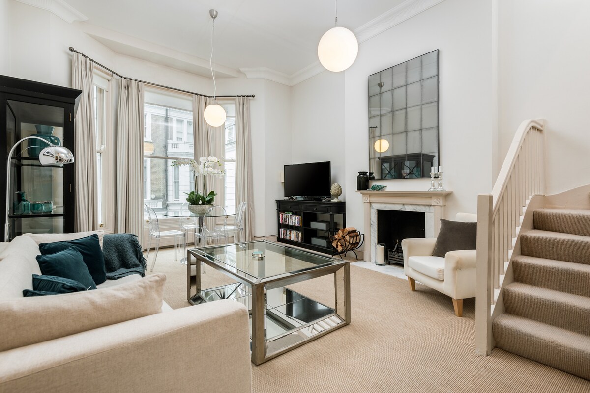 Elegant 1-bedroom Chelsea apartment with oak floors, calming interiors, full kitchen, and access to a quiet communal garden. Just 2 minutes from Kingโs Road and a short walk to Saatchi Gallery, museums, and Chelsea Physic Garden. Peaceful and stylish with secondary glazing to bedroom and lounge for a peaceful stay Superfast Wi-Fi, Smart TV and great transport links via South Kensington & Sloane Square stations Please remove shoes indoors A perfect London base for couples or solo travellers.