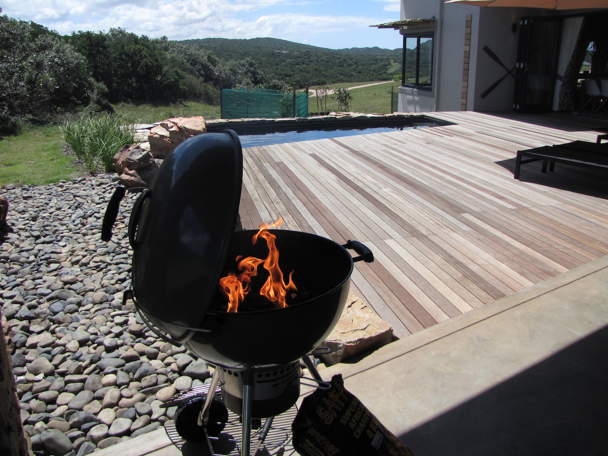 Relax around the swimming pool on the wooden deck, or around the braai area. Enjoy the stunning views towards the river and sea, whilst enjoying spacious and stylish living areas, and well-appointed bedrooms. The village shops are an easy walk away (1.2km to the Spar), as are the Padel Courts (750m). The river is about 550m away and perfect for sundowners. Home away from home! Inverter for power outages.