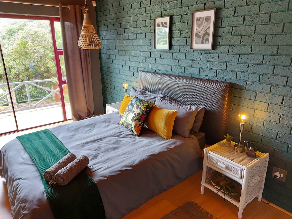 Enjoy modern comfort in peaceful surroundings, watching the bushbuck and endangered blue buck grazing under the milk woods. Indoor braai for the rainy/windy days. Solar supplies continuous electricity and all water is filtered. This spacious area has all the amenities with a huge bedroom en suite. King size extra length bed. Optional bedroom with separate beds. Easy walk to the beach and river. 24/7 security.