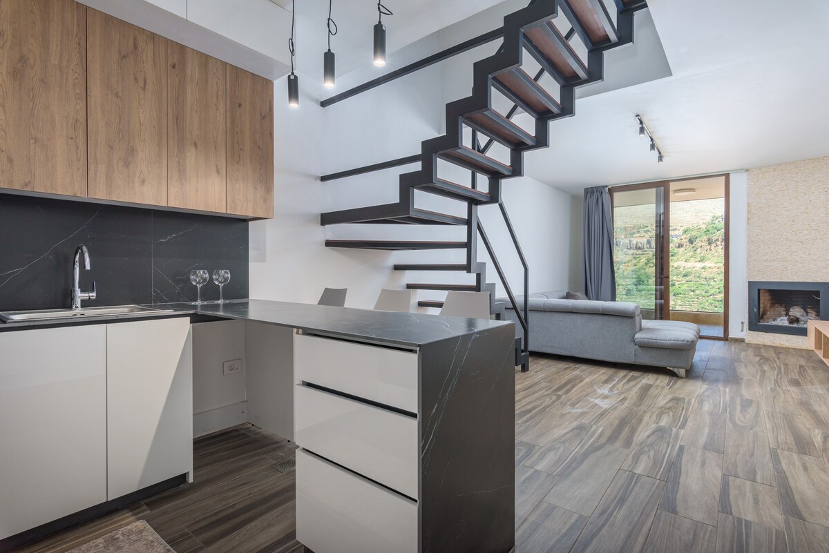 멋진 마운틴 뷰를 감상할 수 있는 사랑스러운 듀플렉스 샬레