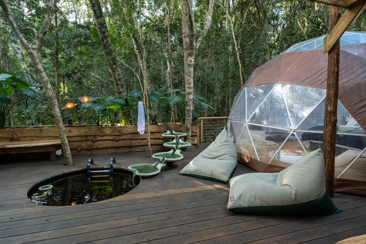 한적하고 숲속 휴양지에서 독특한 방식으로 자연으로 떠나보세요. 가든 루트의 토착 숲 중심부에 자리한 돔은 고급스러움과 황야의 완벽한 조화를 제공합니다. 저희 돔은 편안함을 위해 아름답게 설계되었으며, 자연과 완벽하게 어우러지는 아늑한 야외 생활 공간이 게스트가 다시 연결되고, 휴식을 취하고, 활력을 되찾을 수 있도록 도와줍니다. 모두를 환영하고 싶지만, 환경은 어린이에게 적합하지 않으며 2인에게 더 멋진 휴가를 제공합니다.