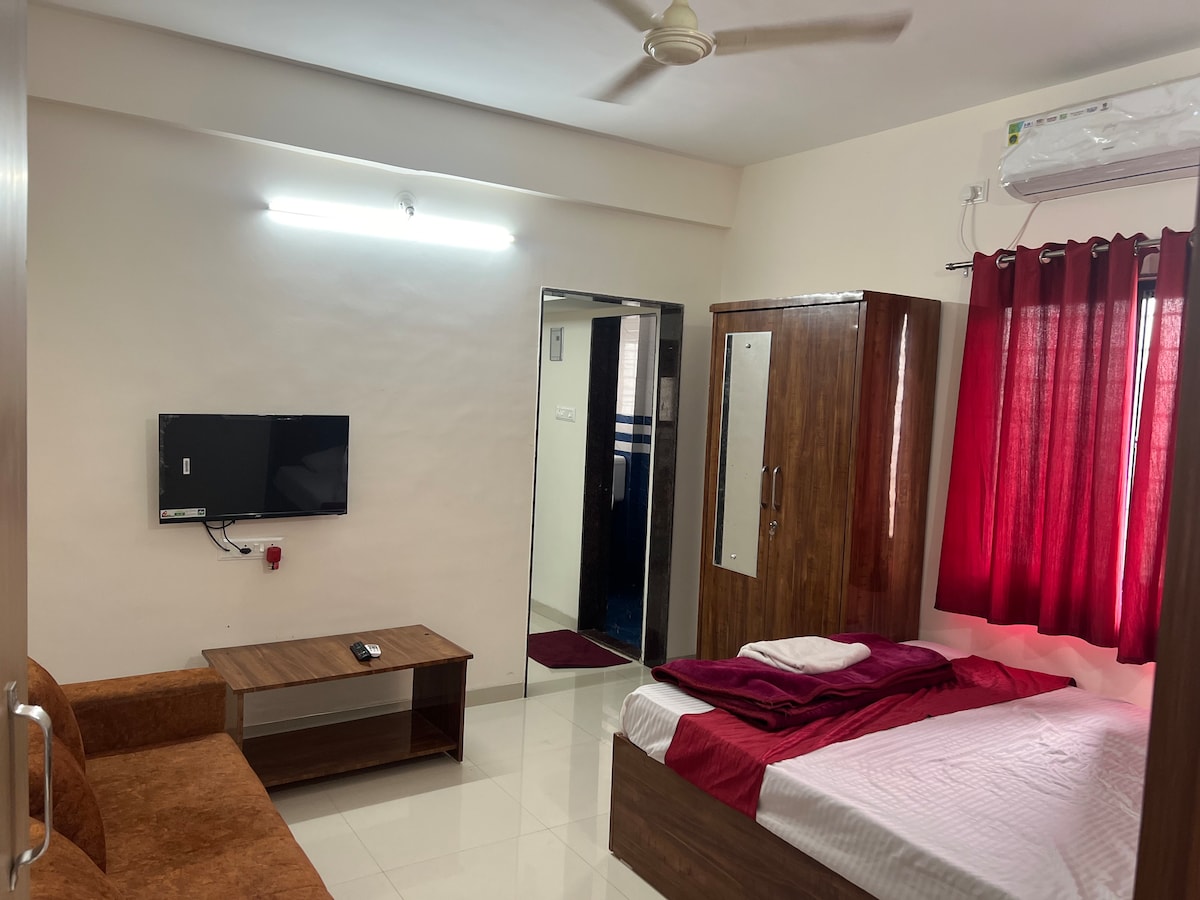 - 가구가 완비된 푸네의 전용 1BHK(판치실 타워 근처, 카라디) - 직접 식사를 조리할 수 있는 기본 조리 도구가 완비된 주방 - 가정식(집 주방에서 갓 만든 식사) 제공. - UPS 전원 백업이 있는 100Mbps 초고속 와이파이 - 전용 관리인(현장) 지원 - Swiggy, Zomato, Blinkit, Ola 및 Uber를 문앞에서 쉽게 이용 가능 - 반려동물 동반 불가, 파티 불가 참고: 2층 아파트(엘리베이터 없음). 짐을 보관할 수 있는 관리인 지원.