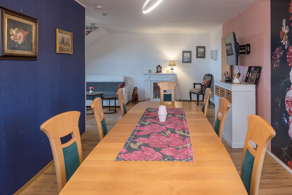 게스트 아파트는 캠퍼스 바로 옆에 있지만 자연과 가깝습니다. 반려동물, 곤충 또는 새에 문제가 있는 사람은 계속 읽지 마십시오. 쇼핑, 수영장, 아이스 스케이트장, 좋은 음식, 자연 보호 구역이 바로 근처에 있습니다. 부지 바로 앞에 주차 가능. 킥엘한, 봅휘테, 가벨바흐 또는 렌슈타이크로 가는 하이킹, 일름 자전거 도로 또는 개별 자전거 투어, 튀링겐의 관광지로 가는 오토바이 투어를 위한 좋은 출발점