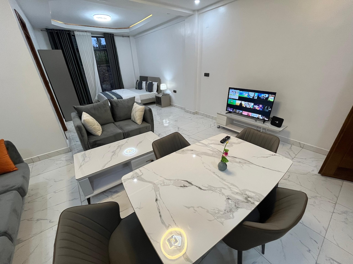 키갈리 중심부에 위치한 현대적인 아파트에 오신 것을 환영합니다! 은행, 슈퍼마켓, 레스토랑, 경기장, 상점 등 필요한 모든 것에 가까운 곳에 위치한 이 아파트는 럭셔리한 숙박을 제공합니다. 수영장, 완비된 헬스장, 연중무휴 리셉션 등 최고급 편의시설을 갖추고 있어 모든 요청에 도움을 드릴 수 있습니다. 세련되고 편안한 공간은 내 집처럼 편안하게 지낼 수 있도록 설계되었습니다. 현대적인 편안함과 훌륭한 서비스가 어우러진 특별한 숙박을 위해 저희 숙소를 예약하세요.