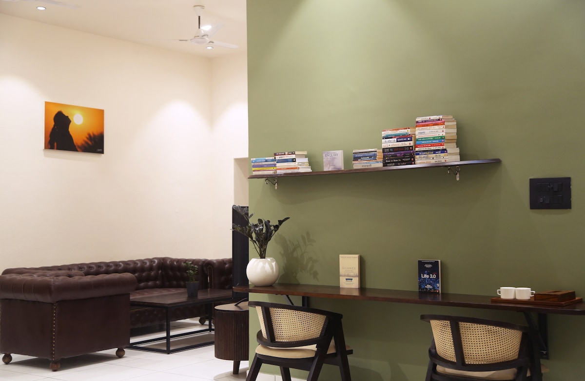 ***Family friendly**Not a Party place*** Pushpshree is a converted home that now operates as a homestay located near Ana Sagar Lake in Ajmer, Rajasthan. It provides a peaceful and comfortable stay away from the city's hustle and bustle. The homestay has spacious and well-appointed rooms with modern amenities. While it's a self-service villa with basic amenities, it's not a luxury property or a hotel, please expect the place to offer a feeling at being home.