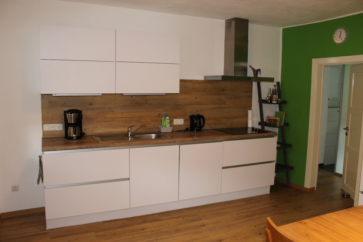 저희는 오래된 여관 "Zur Höll"을 많은 열정을 담아 개조하고 3개의 아파트를 추가 개조했습니다. 이 제안에는 카운터와 연결된 식당 주방이 있는 개조된 전 손님방도 포함되어 있습니다. 모든 것이 사랑스럽게 꾸며져 있으며, 스타일은 프랑크-스칸디나비아입니다. 숙박 인원 12명이 더블 침대 6개를 이용하여 숙박할 수 있으며, 최대 40명까지 파티를 즐길 수 있습니다.