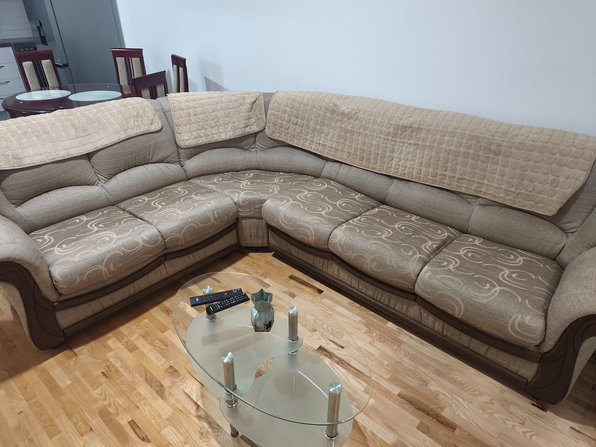 새롭게 리모델링한 고급스러운 아파트로 시내 중심가에 있습니다. 메인 스퀘어에서 100미터 거리에 있으며 가장 가까운 시장은 길 건너편에 있습니다. 아파트는 1층에 있습니다. 초고속 와이파이와 넷플릭스 계정을 이용하실 수 있습니다.